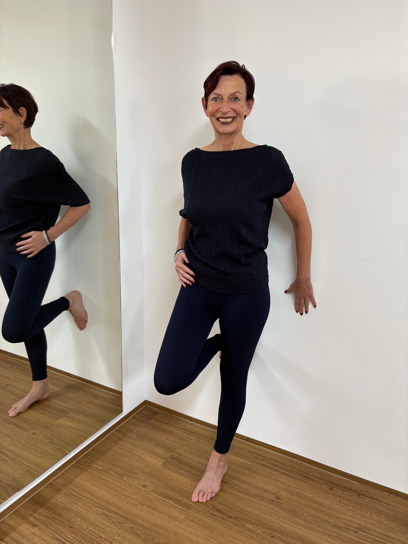 Zieh die Leggings im Sitzen oder mit leicht gebeugtem Bein langsam hoch. Achte darauf, dass sie gleichmäßig anliegt und im Schritt nicht „zieht“ – dann bleibt dir die Kompression und Passform lange erhalten.