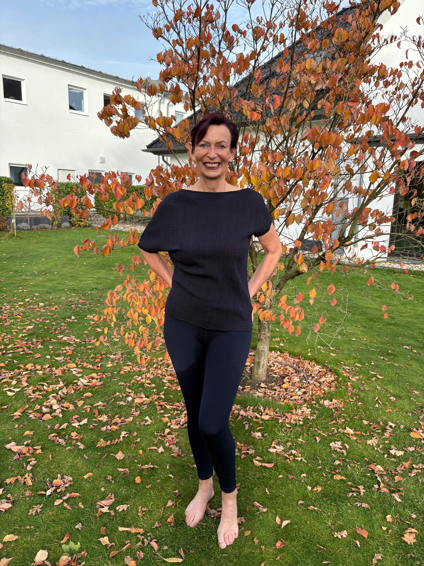 🧵 Bitte achte darauf, die Leggings beim Anziehen Schritt für Schritt – also sorgfältig von unten nach oben – an deinem Bein hochzuarbeiten. Nur so kann sich der Stoff gleichmäßig verteilen und die empfindliche Naht im Schritt wird nicht überdehnt.
