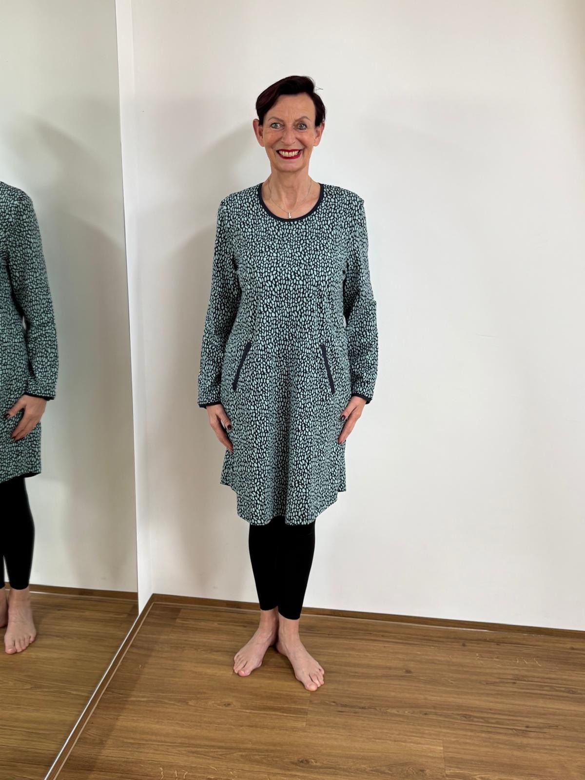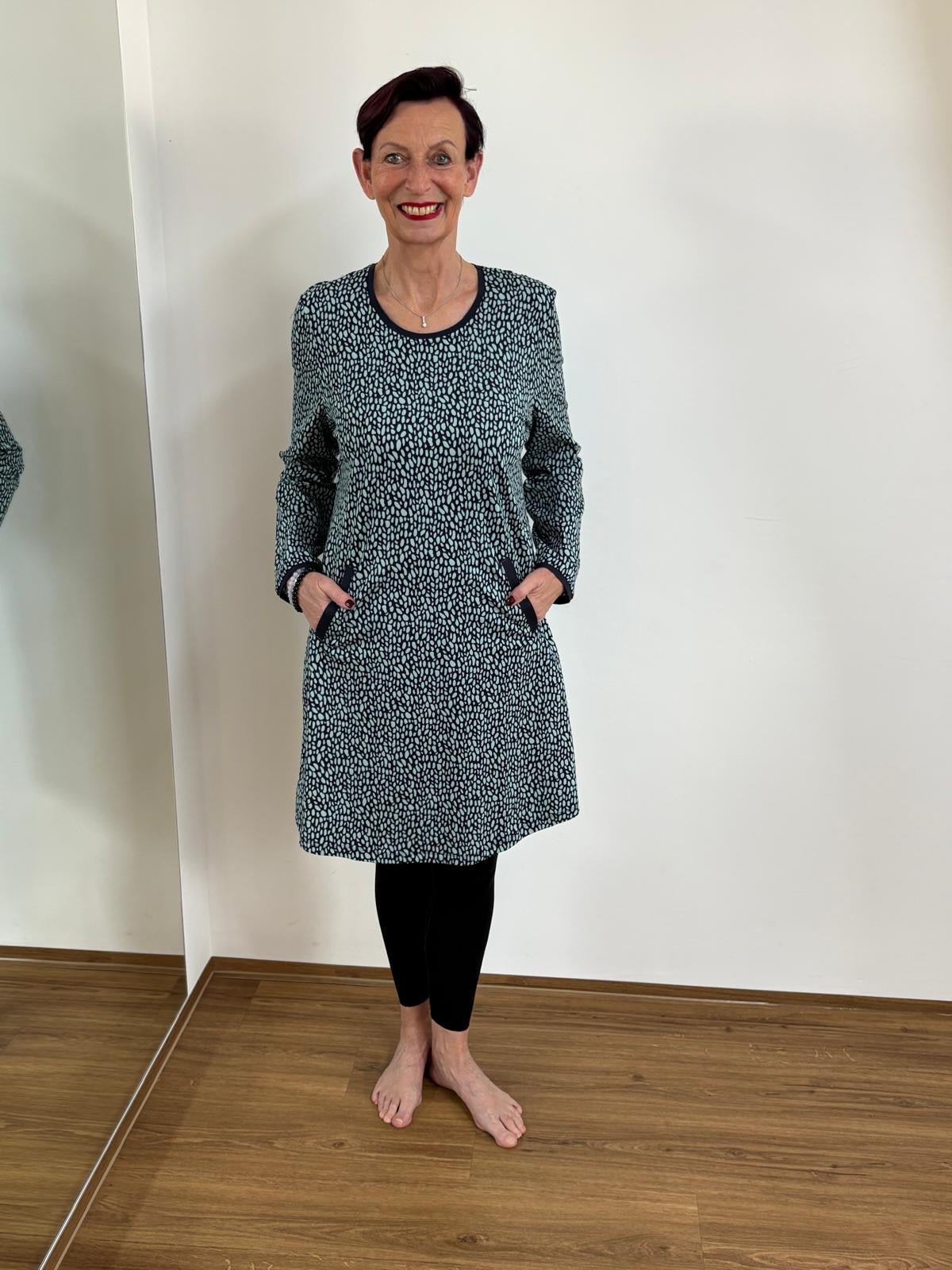 Der öko-zertifizierte Stoff ist wunderbar weich auf der Haut, atmungsaktiv und hautfreundlich – perfekt für alle, die Nachhaltigkeit und Komfort schätzen. Ob als stilvolle Homewear, lässiges Freizeitoberteil oder entspanntes Layering-Piece: Dieses Loungekleid passt sich Ihrem Alltag mühelos an.