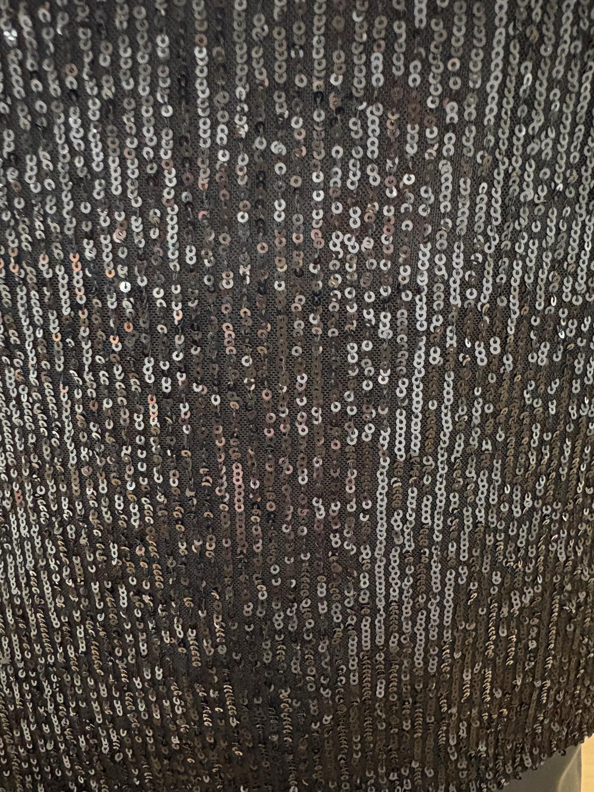 Dieses schwarze Pailletten-Oberteil bringt glamourösen Glanz in jeden Look. Die fein schimmernden Pailletten sorgen für ein edles Funkeln, während der moderne Schnitt dem Design eine coole, zeitgemäße Note verleiht. Ob lässig mit Wunderhose, elegant mit Rock oder stylisch unter einem Blazer – dieses Oberteil lässt sich wunderbar kombinieren und ist ein echtes Statement-Piece für Tag und Nacht