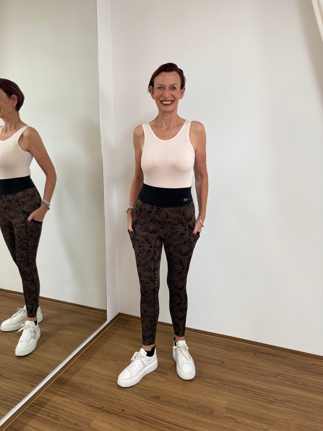 Die Wunderhose ist in verschiedenen Farben und mit unterschiedlichen Mustern erhältlich, sodass Du ganz einfach die Variante wählen kannst, die Dir am besten gefällt. Es ist wichtig, darauf zu achten, dass die Hose nicht zu eng sitzt. Es ist nicht das Ziel, dass sie maximalen Druck auf Deine Beine ausübt. Stattdessen sollte sie beim Tragen immer angenehm sitzen. Auf der Innenseite der Hose befinden sich nämlich die aktiv arbeitenden Noppen, die nur dann ihre volle Wirkung erzielen können, wenn sie genug Raum haben. Um die richtige Größe zu ermitteln, nimmst Du am besten einmal Deine Maße und beachtest bitte auch die Größentabelle. Miss Deine Taille, Deinen Hüftumfang und den Umfang Deines Oberschenkels aus – und miss dabei am besten etwas auf Zug. So ermittelst Du die passende Größe. Kommen zwei unterschiedliche Größen in Frage, dann wähle bitte die größere. Außerdem kannst Du Vera Meyer bei Unsicherheiten per E-Mail oder über WhatsApp (0175 4752517) kontaktieren.